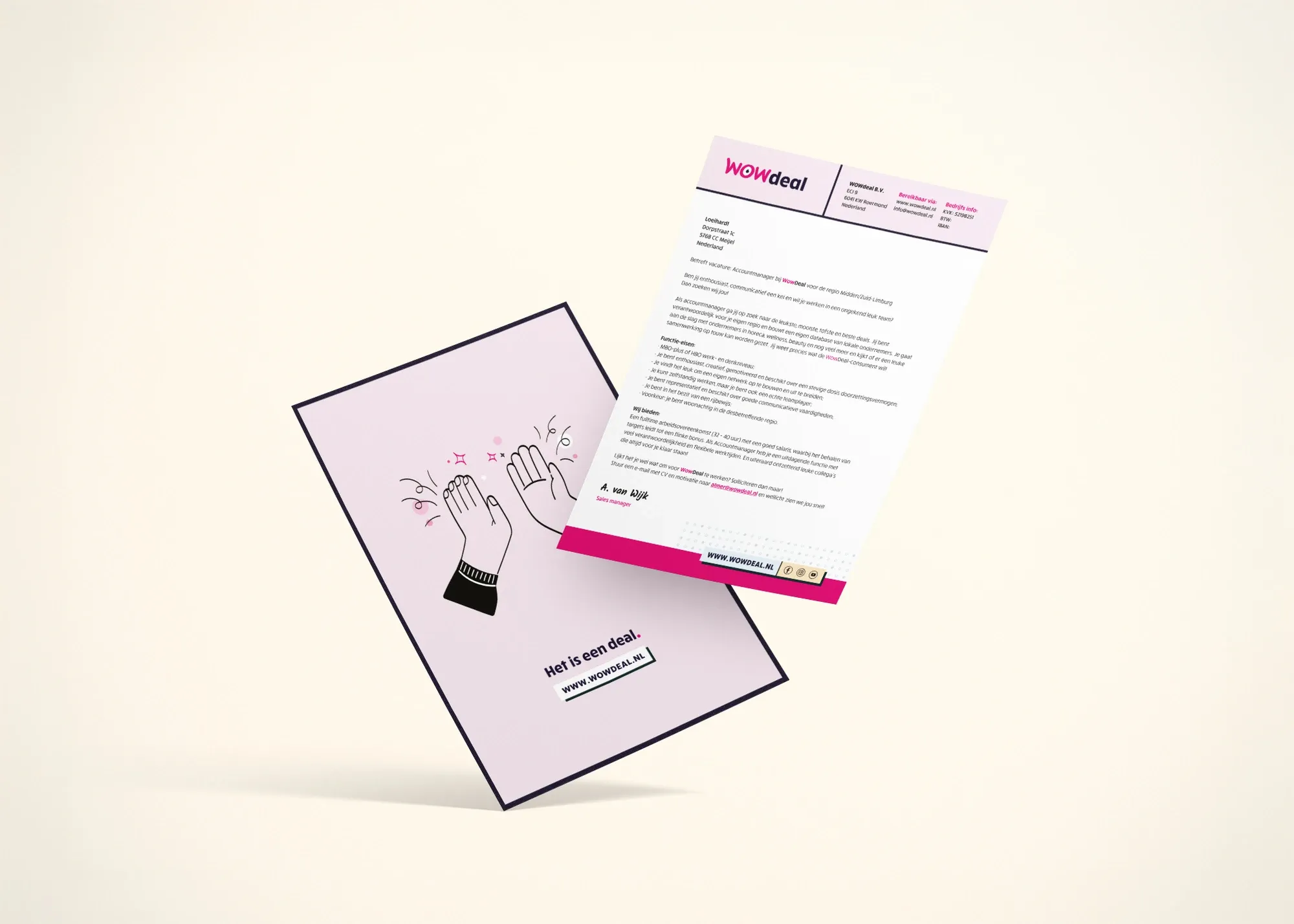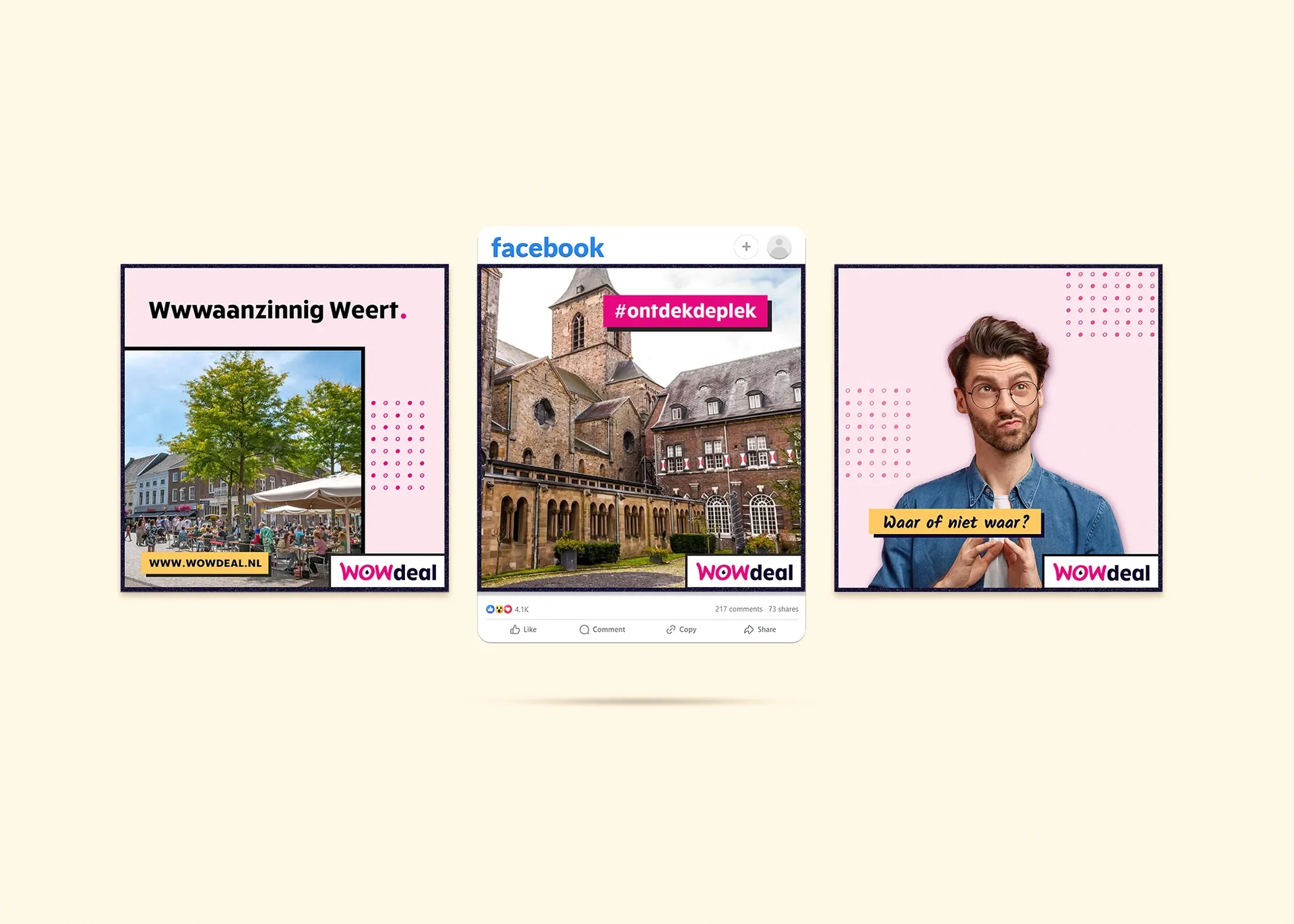 Een stevige visuele upgrade die alles weer bij elkaar brengt. WOWdeal is hierdoor niet alleen een sterk merk in beleving, maar ook in uitstraling en communicatie. De nieuwe stijl straalt plezier, eenvoud en herkenbaarheid uit. Perfect passend bij het platform én de doelgroep.
